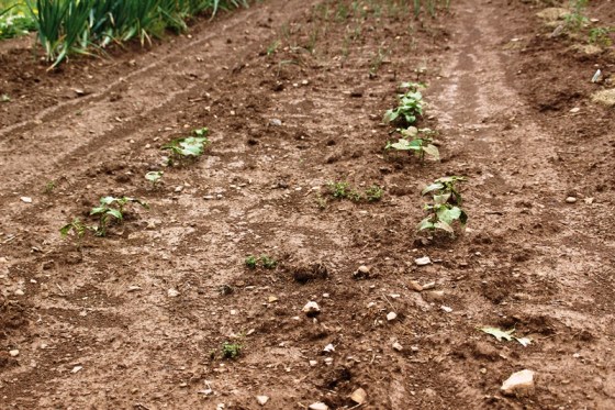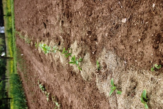 These are Roma beans.  Papa didn’t seem pleased with the turnout after the rain.  These were supposed to be two solid rows.  Lookin’ a little sparse if you ask me.
