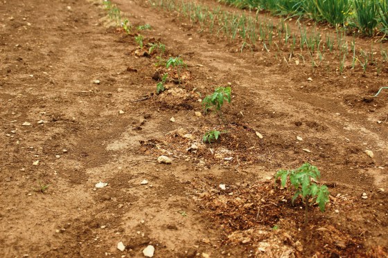 These here are TOE-mater plants.  It was a little risky for Papa to have planted these before May 1 given that temperatures are still pretty low at night in Kentucky.  He covers the plants with canvas if there is a chance of frost, but he is still lucky that these survived as others in the county lost their early plantings.
