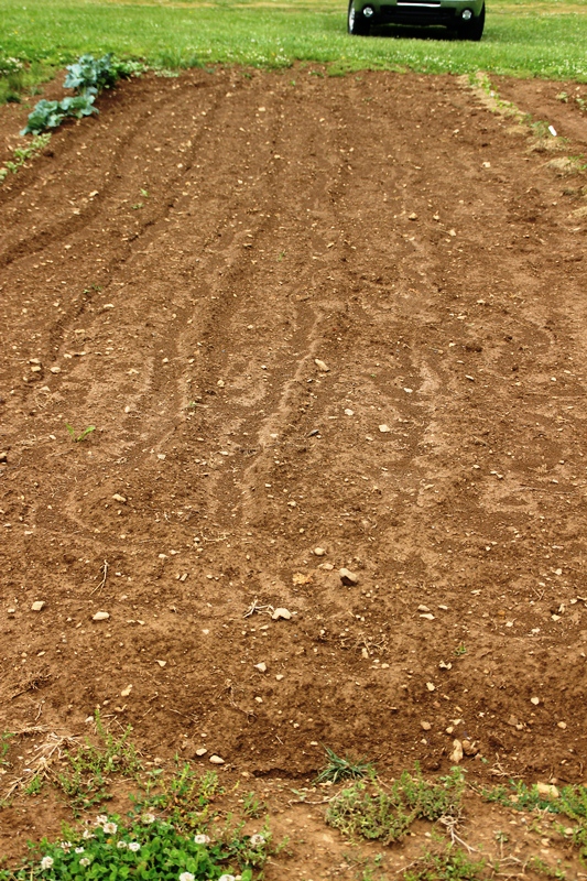 Papa decided that there is room for 3 rows here.  At least 2 of them will be dedicated to several varieties of beans: