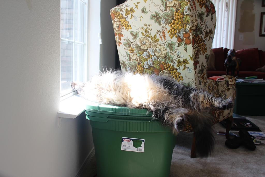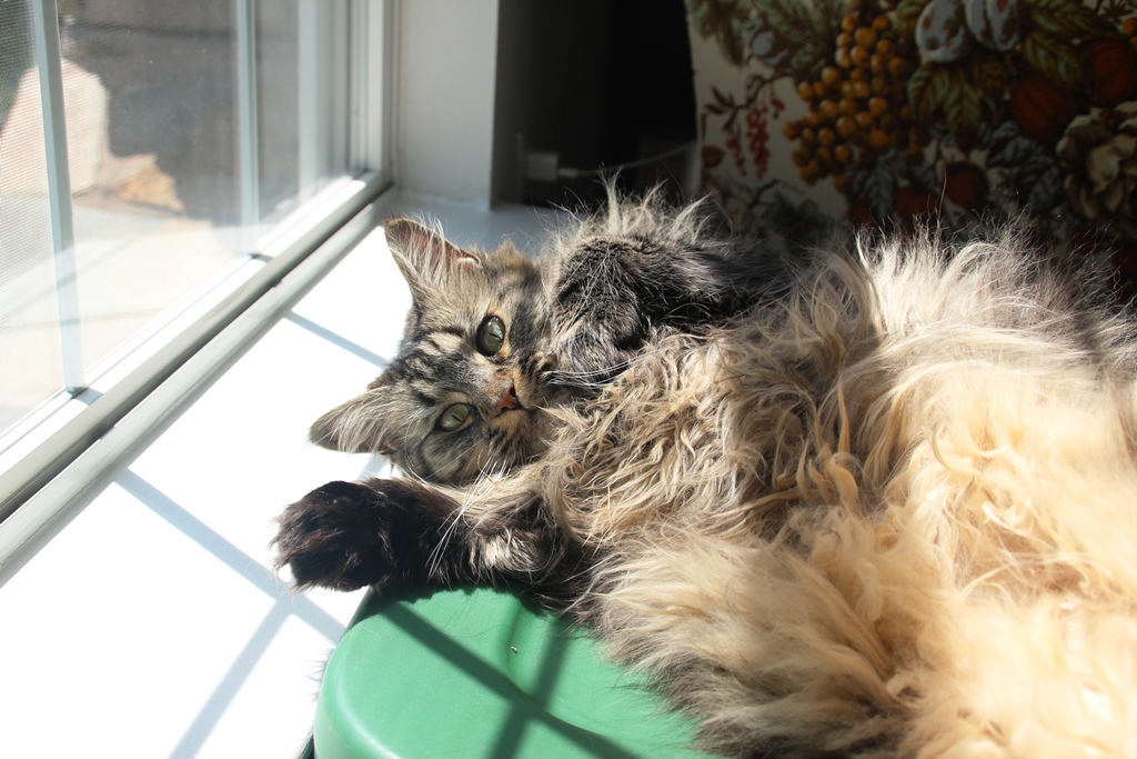 Gus can’t stand her unkempt fur, either. He gives her baths when she’s sleeping.