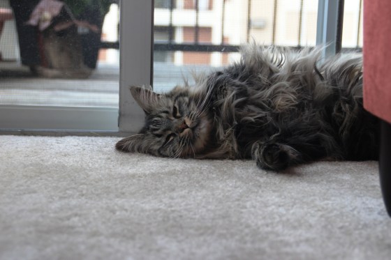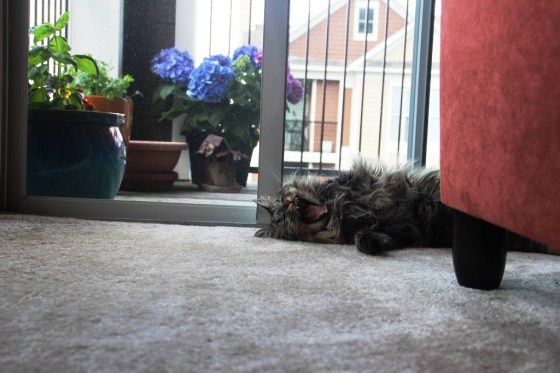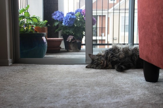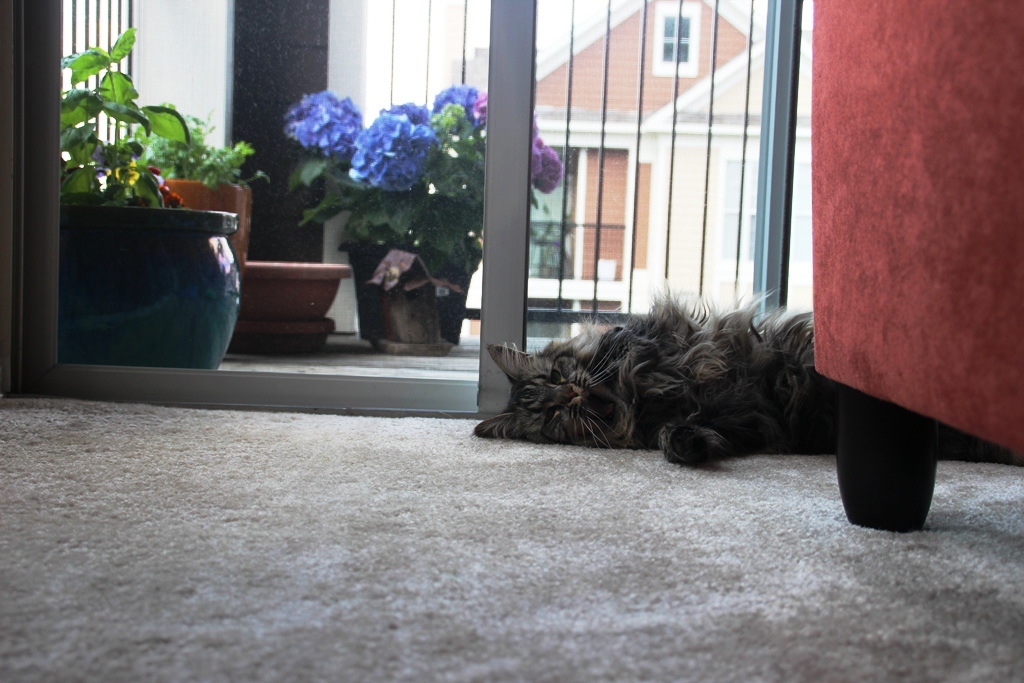 Sometimes she does both jobs at once.  Here she is relaxing while keeping an eye on the deck.
