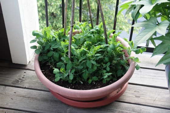 I’m going to go ahead and declare the sweet potato experiment a success as the vines have overtaken their planter and look like they’re about to make a move on the peas.
