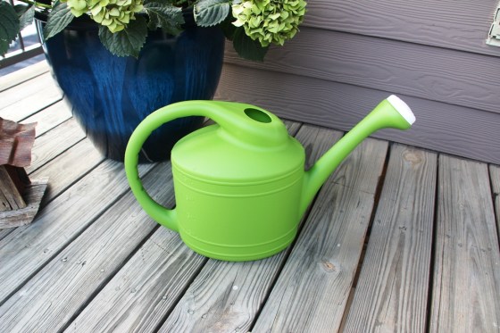 Now, about that watering can. Living on the third floor of an apartment building, I do not have access to a hose with which to water my container garden. I also do not own a large vessel to transport water from my sink/bathtub to my deck.