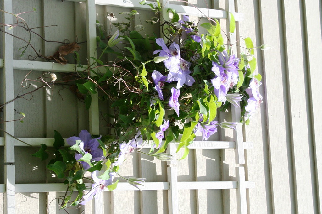 The peculiar clematis that looks dead for the first 8 feet and then erupts into blooms.  I used to look out my bedroom window and check on it every morning to see if there were blooms.