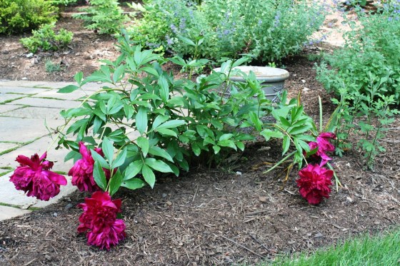 While my container garden on my deck seems to be thriving, I miss my big ol’ flower garden at my parents’ house in Boston.  To make matters worse, my dad sent me pictures (which I requested) of my old garden.  The garden is flourishing in its fourth year, especially since Hurricane Irene put the final nail in the coffin for the big shade tree that kept some of my part shade (read: mostly sun) plants from reaching their full potential.