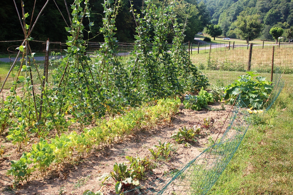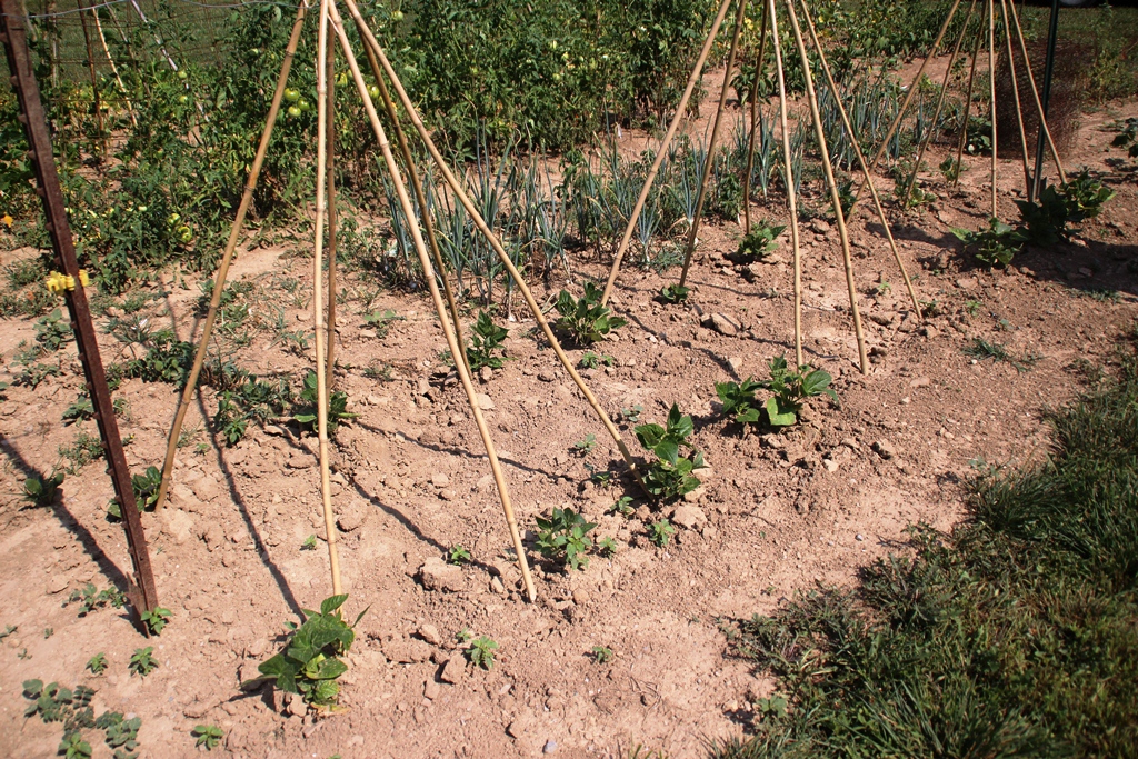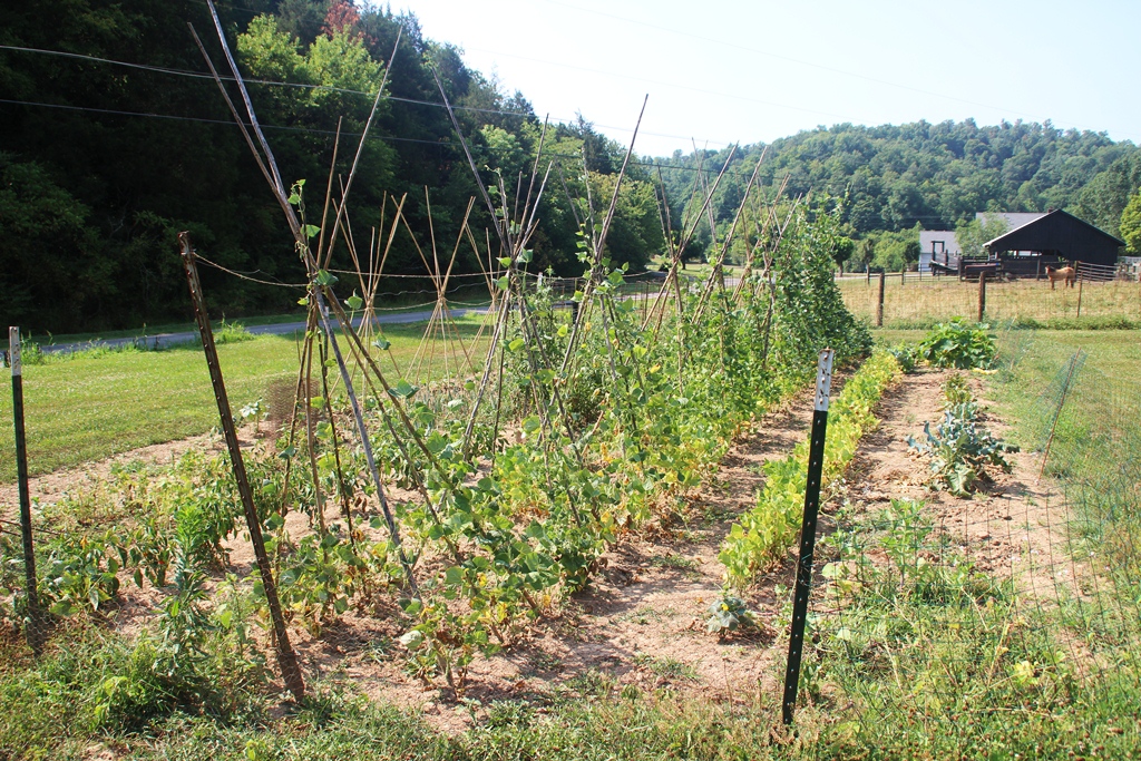 Here is the garden after weeks and weeks without rain. Amazingly, the beans are vining, however, they are not nearly as full as past years and have not produced many beans. Usually by this point in the season, the vines are so thick that you can’t see the poles. We have a long way to go to catch up this year.