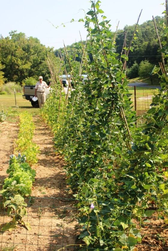 Apparently Papa had forgotten to plant any Missouri wonder beans when he planted the other 6 or 7 varieties so he stuck a few rows in where the early onions were.