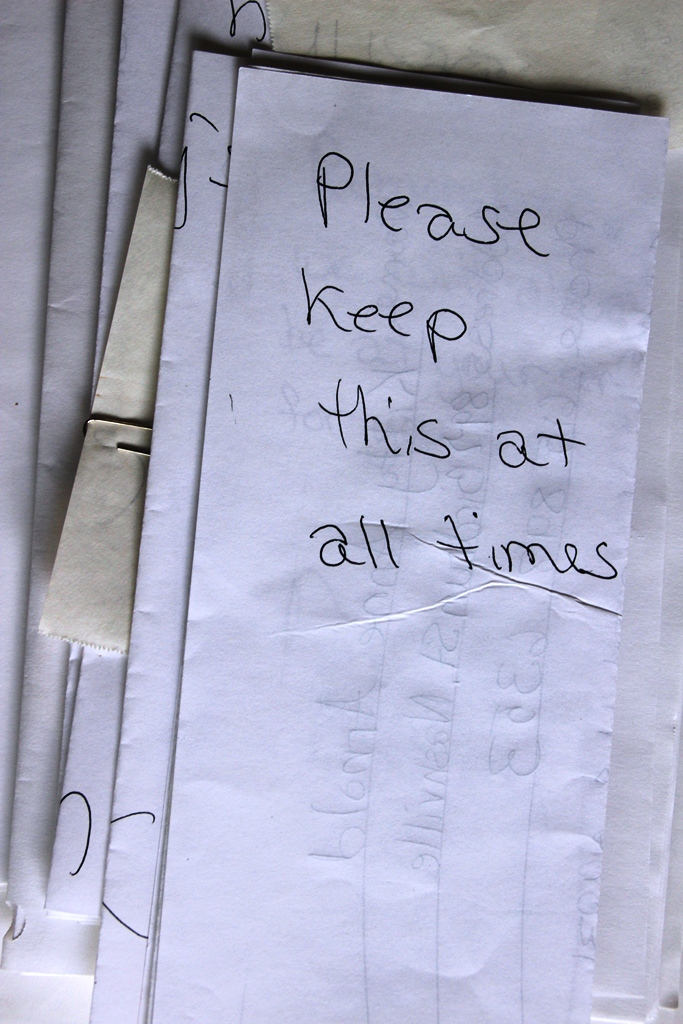 We also had very sophisticated folders for our customers’ paperwork.  Look at what magic you can work with a piece of paper, some post-its and a stapler!