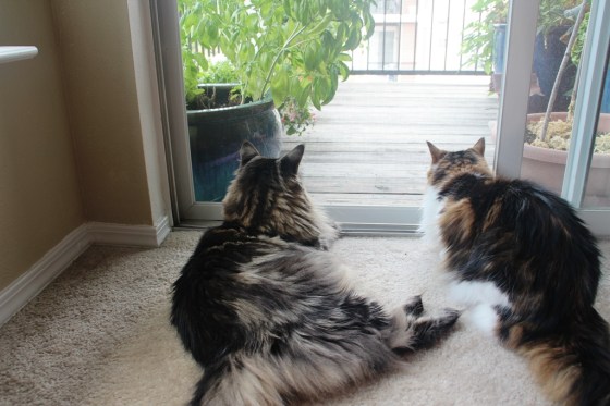 The other day, it was cool enough to turn off the air conditioning and open my sliding door for about 5.4382 minutes. Gus and Scarlett took advantage of this brief spell of pleasant weather and parked themselves by the screen door.