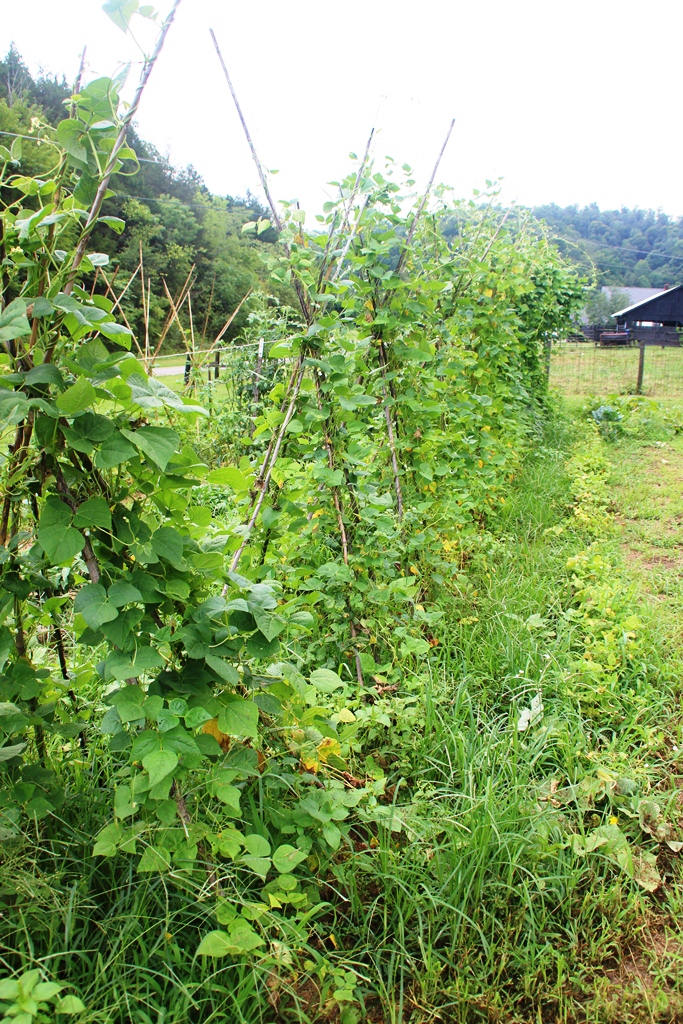 Lots of leaves and small blooms, but remarkably few beans for this point in the season.  I’m hoping there will be a late crop.