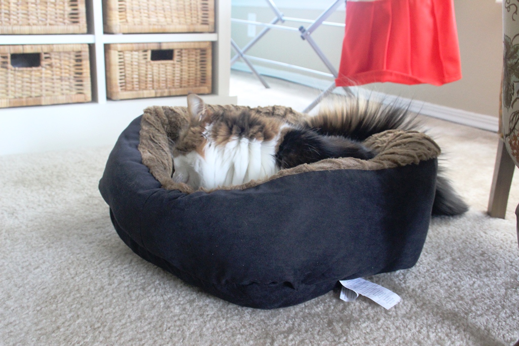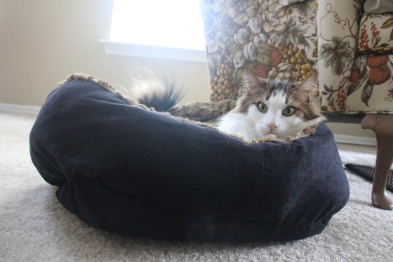 After a few days of getting to know each other, it appears that Gus and Scarlett and their new bed are friends. Gus was more open about his approval of the bed.  Scarlett, however, I only catch in the bed at night, when the lights are out, at approximately 3:14 A.M., when she thinks I won’t notice.