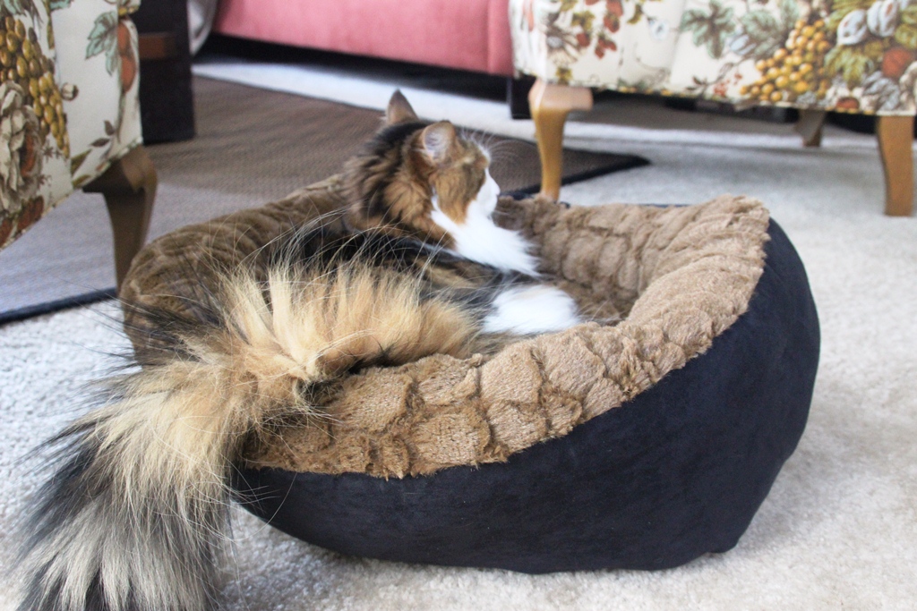 Maybe I should have bought another bed for Gus’s tail.  It just can’t be contained by this bed.