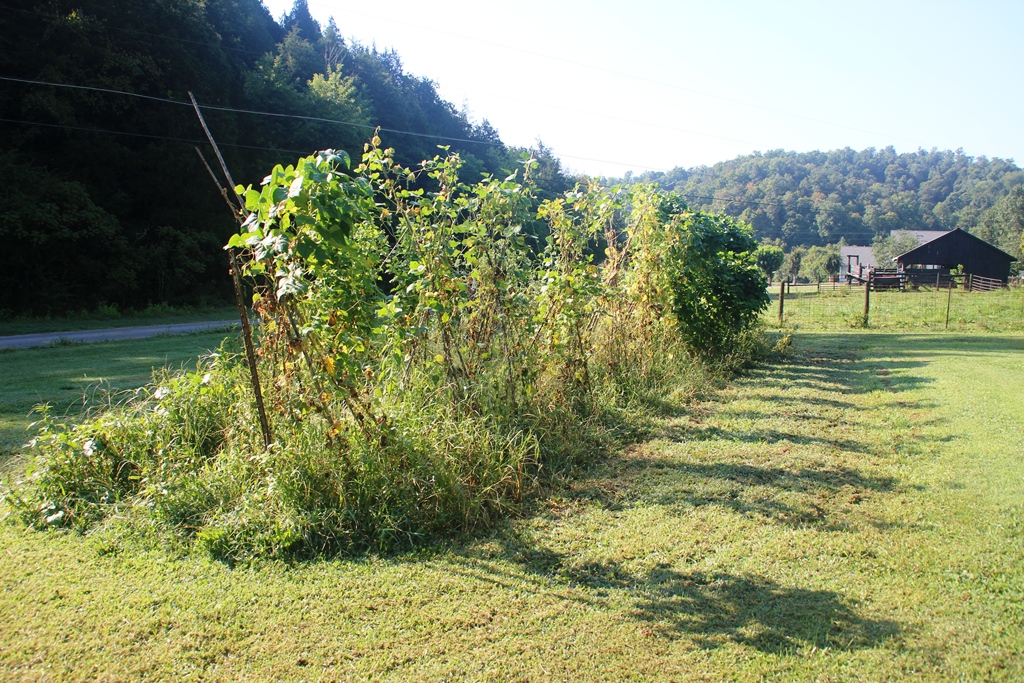 The bean plants had grown up and out quite a bit. These were close to 8 feet tall. I had Papa stand next to them to give a sense of scale.