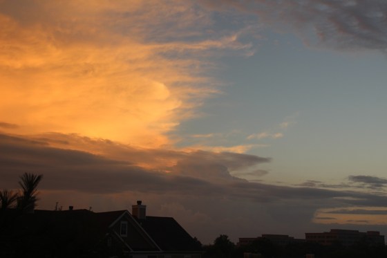 The only thing noteworthy that happened with the tornado watch was a pretty cool sunset/cloud display in very lovely shades of orange and pink.