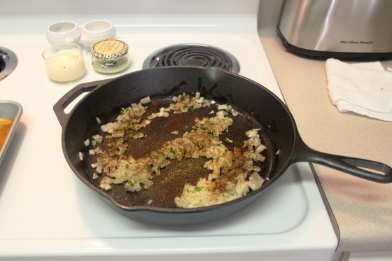 Then throw in the garlic and half of the jalapeno, allowing them to soften for about 30 seconds.