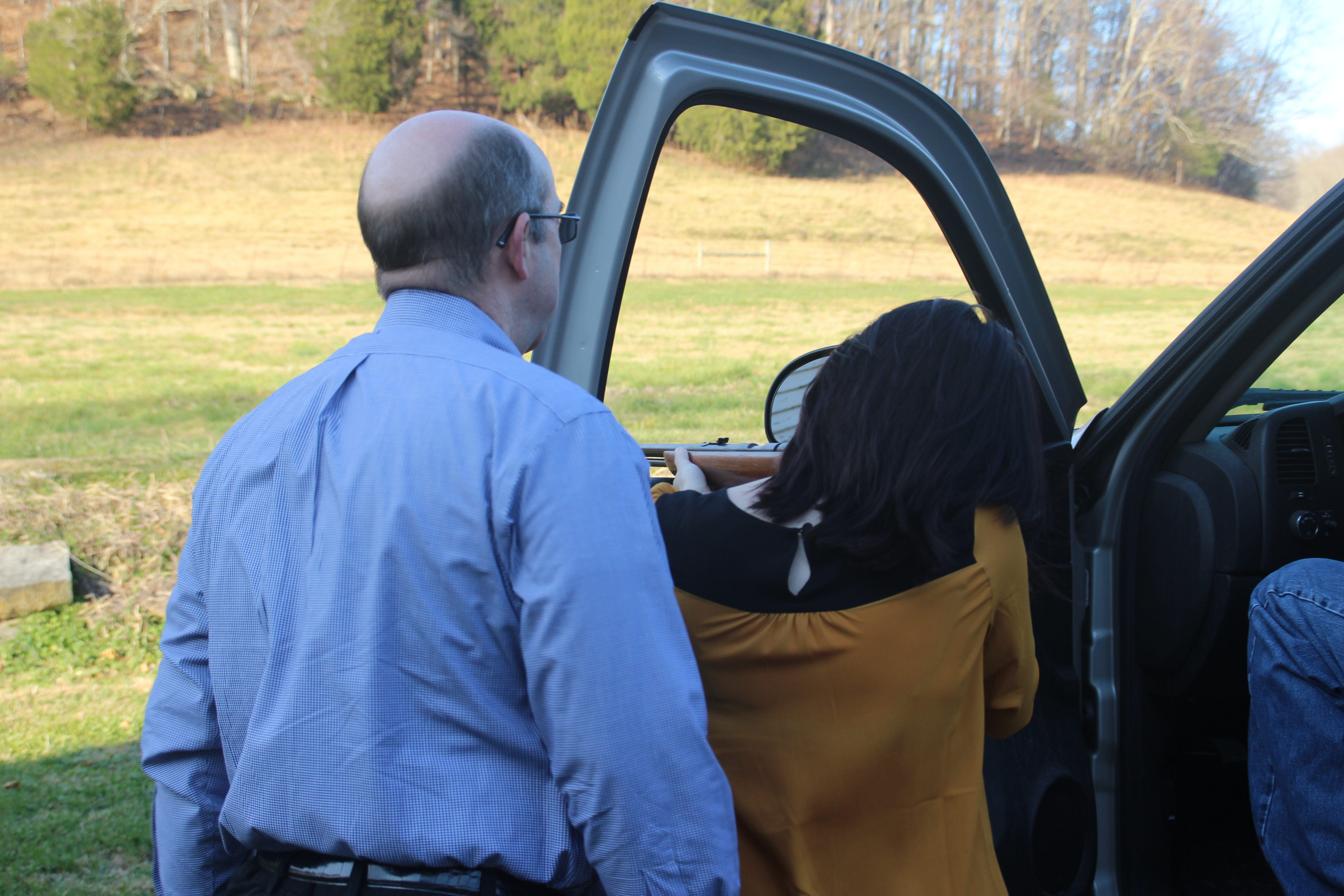 I’m not really sure how we got on the topic, but I asked Uncle Brian if there were any guns I could shoot for fun.  After our noon Thanksgiving meal, he came back with a 22 rifle.  We piled into Papa’s truck and headed to one of the farms to do some damage.