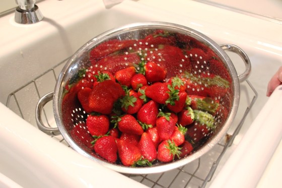 It is absolutely CRITICAL that you start with fresh and perfectly ripe berries. If you do a little drive-by test with your nose, you should be able to smell their sweetness. It also doesn’t hurt to take a bite of one of the berries to confirm that on the inside they are not tough and white and tart, but instead juicy and red and sweet.