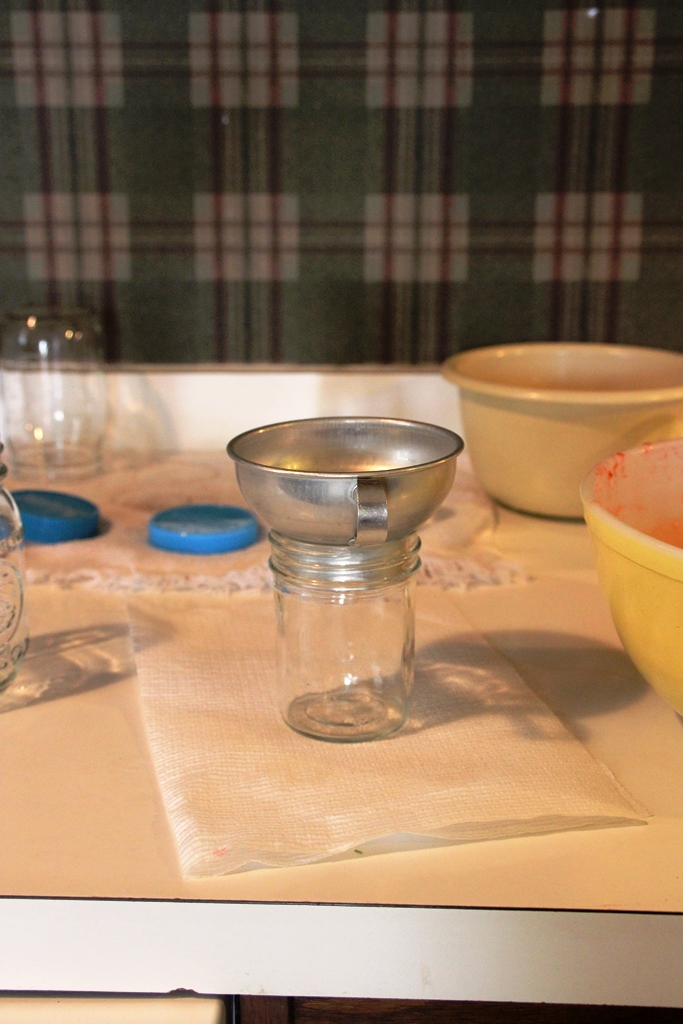 Next, please save your heart some ache and use a funnel when pouring the jam into the jars. This will drastically reduce the amount of jam that spills onto your counter, your paper towel usage, and, of course, the amount of jam that tragically will never make it to a biscuit.
