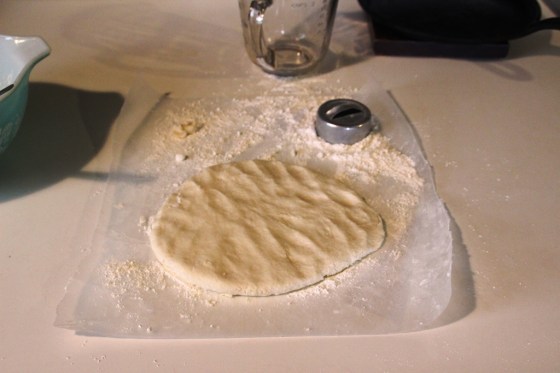 Then, use a SMALL biscuit cutter to cut out the biscuits. (See tangent above for rationale).
