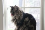 She passes many an afternoon on her perch, watching the activity outside through the sliding door.