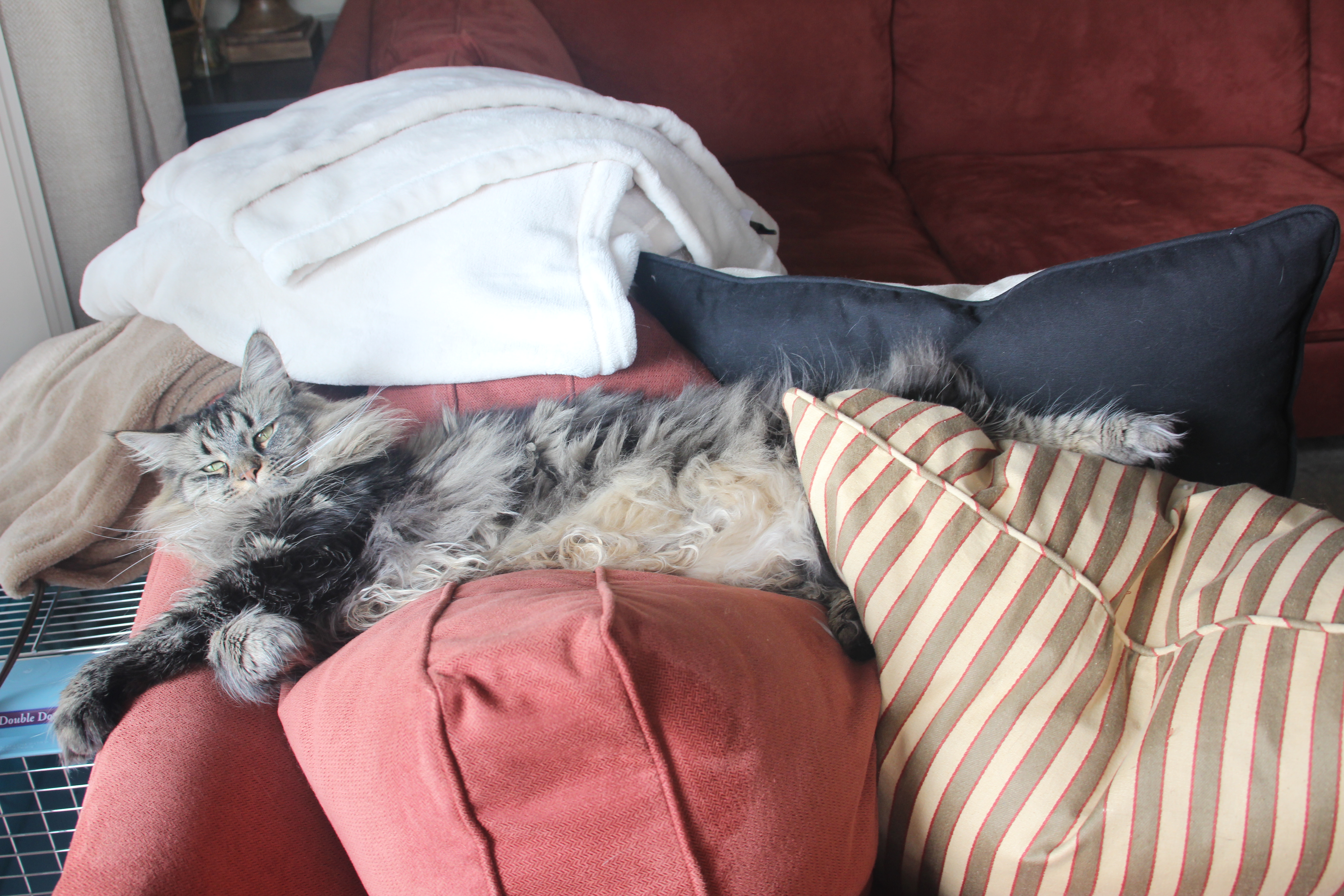 It was a gloomy day in middle Tennessee on Monday. To perk up after my lunch meeting, I decided to make myself a coffee. I usually limit myself to coffee in the morning so this is a departure from my routine. As my coffee machine (the setting up of which I will detail in a future post) was warming up, Gus started having an absolute fit, meowing loudly and constantly, desperately trying to get my attention. At first I thought something was wrong, but both he and Scarlett didn’t seem to be in any life-threatening binds. I went to the fridge to grab the half-and-half for my coffee and Gus continued his tirade, putting his paws up on the freezer drawer and looking up at the half-eaten can of salmon on the top shelf. He had been fed that morning per usual so I couldn’t figure out what all the fuss what about. Then it dawned on me. The term “conditioned response” popped into my not yet caffeinated brain and I realized that Gus heard the coffee machine warming up, which usually signals that I am about to crack open a can of Fancy Feast for his breakfast. As I assume he doesn’t track time very well, it was morning for all he knew and he heard his cue to beg for food like he hadn’t been fed in weeks and his life was falling to pieces.