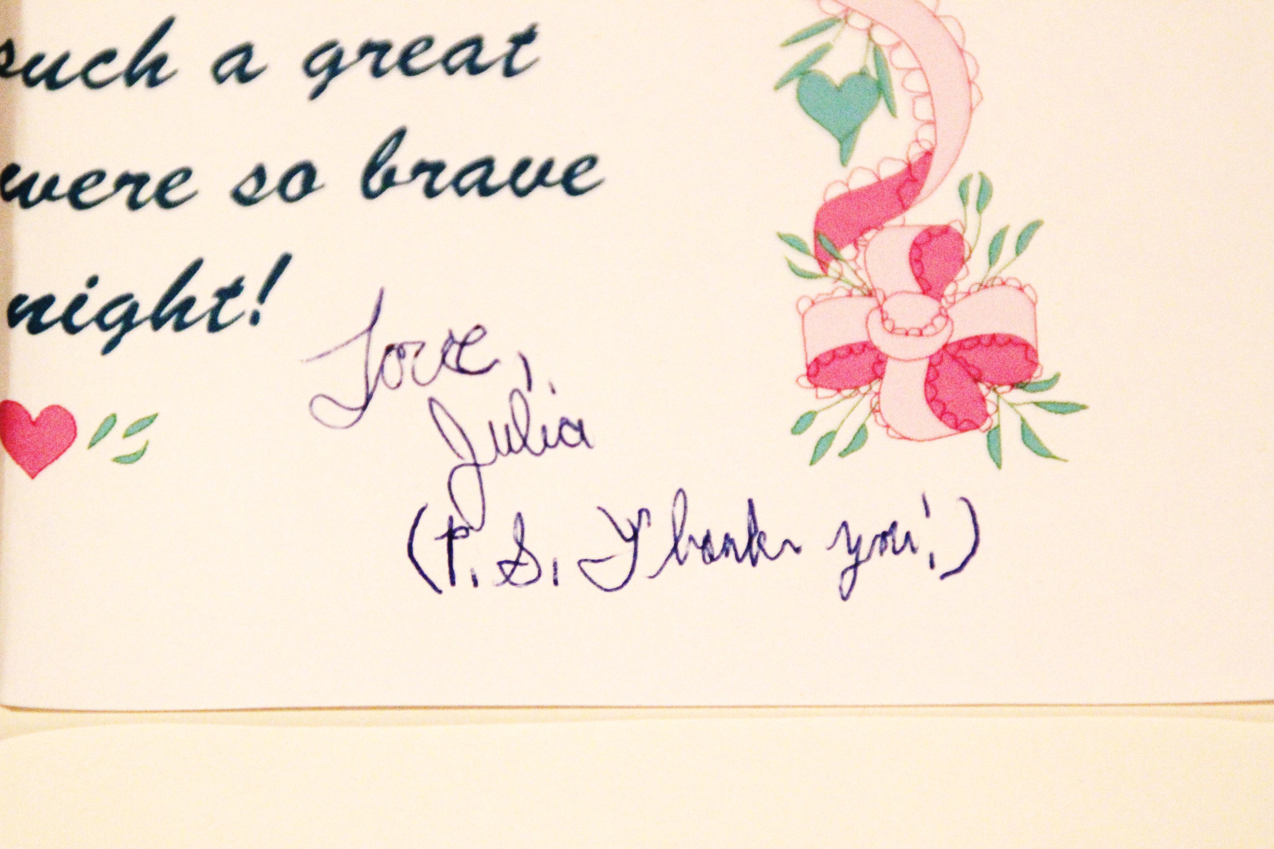 As if I didn’t catch on to the sentiment on this card, she just wanted to be sure I got the message in the postscript. I don’t know why I find this so funny, but I do. Even though that was not an evening I would like to relive (and I’m sure Eugene wouldn’t either), I’m so glad I found this card because it is so Eugene and it makes me smile.